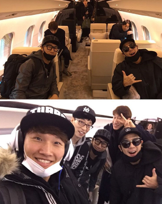 공개된 사진 속에는 '런닝맨' 투어를 위해 전용기를 타고 중국으로 이동 중인 유재석, 김종국, 지석진, 하하, 이광수의 모습이 담겨있다.