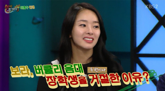 이날 MC들은 진보라에게 "버클리 음대 장학생 제안을 두 번이나 거절했다. 왜 그랬냐"는 질문을 던졌다.