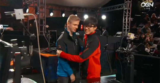 이상혁과 헨릭 한센은 인사를 나누며 무대를 떠났다.