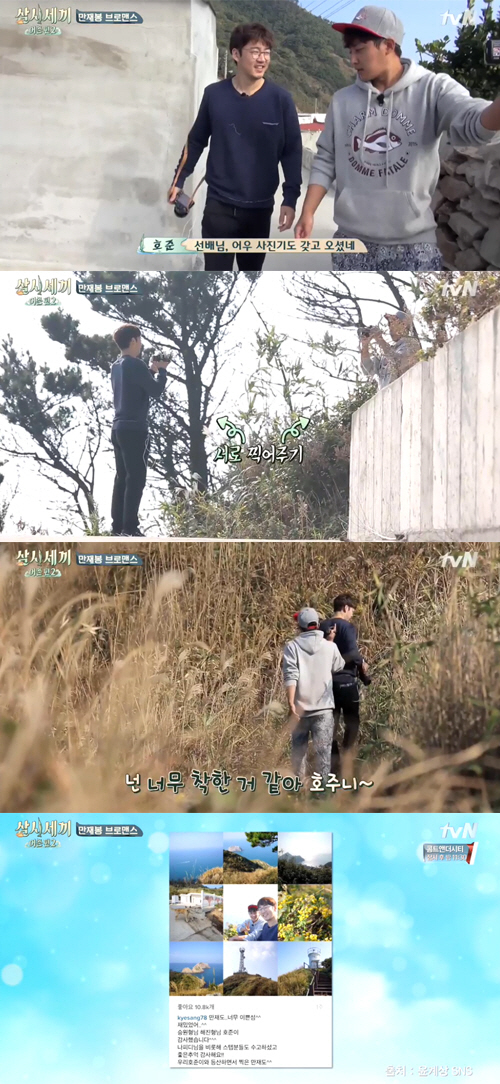 나란히 산에 오른 손호준과 윤계상은 만재도의 경치를 바라보며 감탄했다. 또한 서로의 사진을 찍어주며 우애를 과시했다.