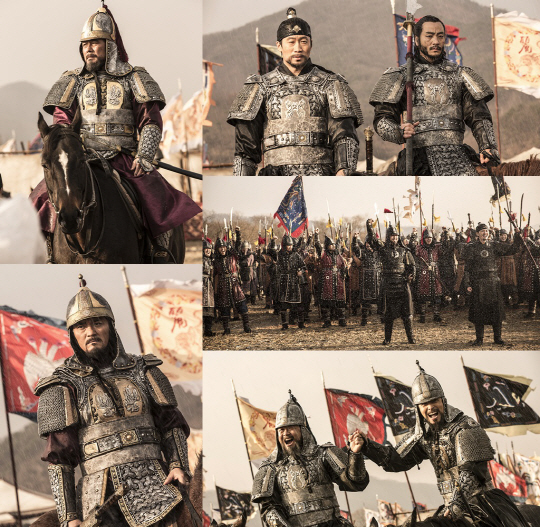 이런 가운데 14일 '육룡이 나르샤' 제작진은 의미심장한 장군들, 군사들의 모습이 담긴 촬영 스틸을 공개해 이목을 집중시켰다. 억수 같은 비가 쏟아지는 가운데 이성계, 조민수(최종환), 이지란(박해수), 남은(진선규), 이신적(이지훈), 우학주(윤서현) 등은 수많은 병사들과 함께 있다.