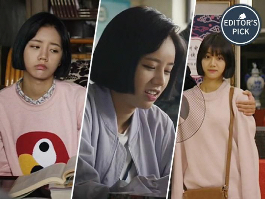 러블리 핑크 니트 극 중 갑작스런 박보검의 스킨쉽에 놀란 표정을 짓는 혜리의 니트는 러블리 핑크컬러. 베이직하고 심플한 디자인에 어깨라인 디테일이 고급스러움을 더해줍니다. 파스텔톤 핑크 색상으로 사랑스러움과 귀여움을 가득 담았어요. 목라인을 살짝 타고 올라오는 반폴라 디자인이 니트만으로도 스타일리쉬한 연출을 할 수 있도록 도와줘요.