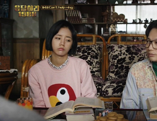 깜찍한 앵무새 맨투맨 언니와의 과외공부가 너무도 싫은 극 중 성덕선의 시무룩한 표정을 돋보이게 한건 사랑스러운 연분홍 맨투맨입니다. 중앙부분의 오버사이징한 앵무새 그래픽이 제대로 귀엽네요. 데님 진과 함께 편안하게 입을 수 있으며 화려한 패턴의 셔츠와 레이어드 하는 것도 좋겠네요.