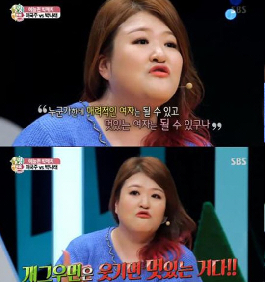 특히 이국주는 "예쁘게 태어나지도 않고 날씬하게 태어나지도 않았지만, 누군가한테 매력적인 여자는 될 수 있고 멋진 여자는 될 수 있겠다는 생각을 했다"며 "개그우먼이니까 웃기면 멋진 거란 걸 알게 됐다"고 자부심을 드러냈다.