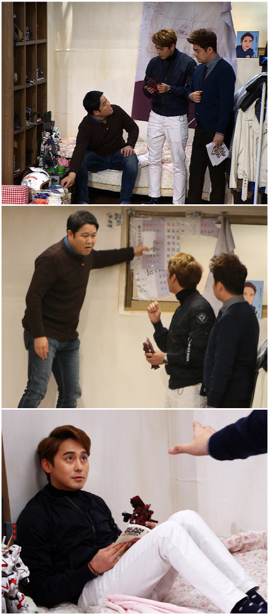 앞서 진행된 녹화에서는 김상혁의 심각한 방 상태는 물론 방 주인 김상혁의 '애기' 발언이 MC들과 디자이너들을 멘붕에 빠트렸다. 김상혁의 방은 임시방편으로 달력을 붙여놓은 깨진 유리창, 잔뜩 쌓여있는 만화책과 감당할 수 없는 옷들로 발 디딜 틈조차 없어 보였다. 특히 MC 김구라, 전현무는 방을 보자 "옷 많은 무명 연예인 방 같다", "전형적인 남자 자취방"이라고 독설을 쏟아내 현장을 폭소케 했다.