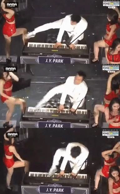 박진영은 "리허설을 두 번 했는데 카메라 리허설 때 너무 신이 나서 피아노를 발로 쳤는데 되더라"며 "난 신이 나서 했는데 사람들이 뒤집어지면서 웃더라"고 털어놨다.