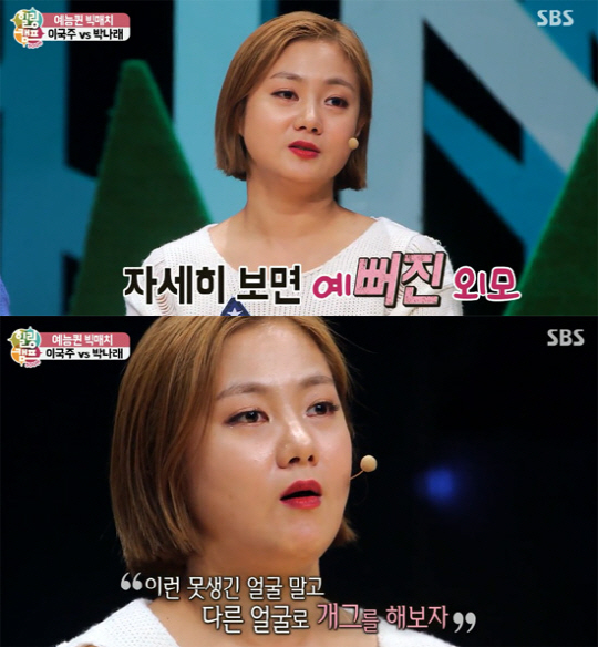 이날 박나래의 외모에 대해 MC 김제동은 "자기가 못생겼다고 해서 그렇지 못생기지는 않았다", MC 황광희는 "예쁘다"라고 말했다.