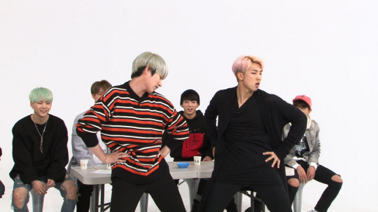 본격적인 걸그룹 댄스 베틀이 시작되자, 평소 방탄소년단에서 '춤신춤왕'으로 불리던 랩몬스터는 원래의 안무와는 전혀 다른 코믹 버전의 EXID '위아래' 댄스를 선보였는데, 희철은 랩몬스터의 댄스를 중단시키며 즉석에서 '위아래' 댄스 강습을 시작했다.