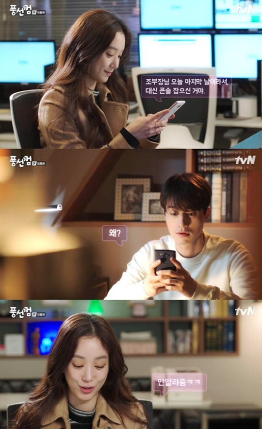 이날 리환은 행아에게 "너 왜 화면에 없어?"라며 문자를 보냈다. 이에 행아는 "조부장(박원상 분) 오늘 마지막 방송이라 대신 콘솔잡으신거야"라며 "3, 4부엔 들어갈거야"라고 답했다.