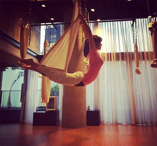 사진 속 임수향은 천장에 달아놓은 천에 매달려 플라잉 요가 동작을 선보이고 있다. 임수향은 고난이도의 자세를 취하며 놀라운 유연성을 과시하고 있어 눈길을 끈다.