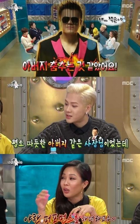 이에 잭슨은 "아버지 춤 추는 것 같았다"며 "무대 위에서 섹시한 춤을 추니 이상하더라"며 당시 무대를 본 소감을 전했다.