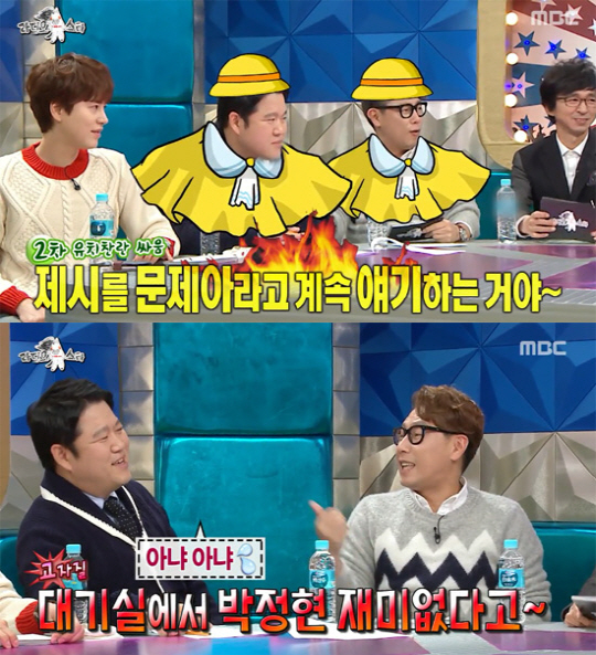 김구라는 "아냐"라고 말한 뒤 윤종신에게 다시 "박정현 재미없다고 얘기 했지?"라고 맞대응 해 웃음을 더했다. <스포츠조선닷컴>