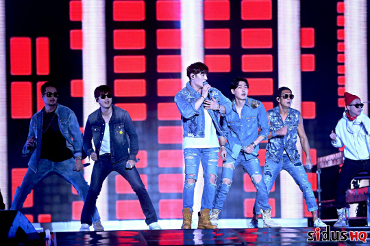 '국민그룹' god가 컴백 2년차를 맞이해 더욱 강렬해진 모습으로 돌아왔다. 무대에서 열정적으로 안무를 선보이고 있는 god 멤버들. 사진제공=싸이더스HQ