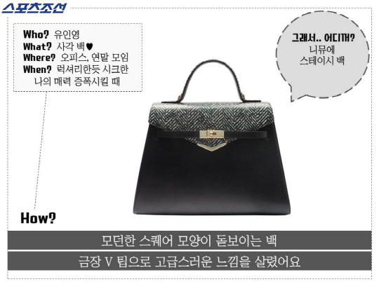 [어디꺼] '오마비' 유인영의 모던한 스퀘어 블랙 토드백?