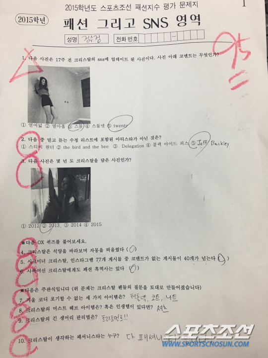 뒤이어 크리스탈이 95점으로 2위를 차지했다. 크리스탈은 자신의 SNS에 관한 1번 문제를 풀던 중 헷갈린다며 답을 두 개를 표기 5점 감점됐다. 시험지 성명란에 "정수정" 본명을 쓴 크리스탈이 저도 모르게 당황하며 "크리스탈이 아니라 정수정이라고 적고 말았어!"라고 말하는 장면이 패셔니스타 영상에 담겼다.