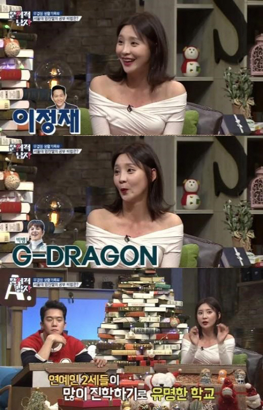 이날 MC 전현무는 "초등학교 동창 중 우리가 알 만한 사람이 있냐"고 질문, 지주연은 "이정재 선배가 있다. 빅뱅 멤버 지드래곤도 있다. 요즈음 연예인 자제들도 많이 다닌다고 하더라"고 말해 눈길을 끌었다.