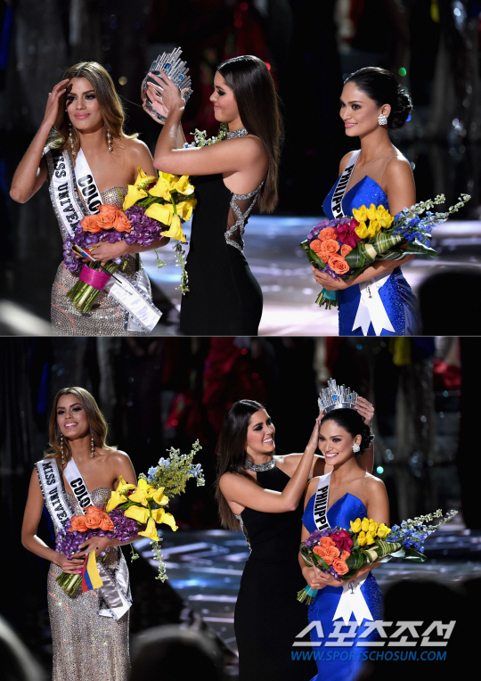 20일(현지시각) 미국 라스베이거스 플래닛 할리우드 리조트 앤 카지노의 더 액시스에서 열린 2015 미스 유니버스 대회에서 사회자인 코미디언 스티브 하비가 미스 유니버스 수상자를 미스 필리핀이 아닌 미스 콜롬비아로 바꿔 호명했다.