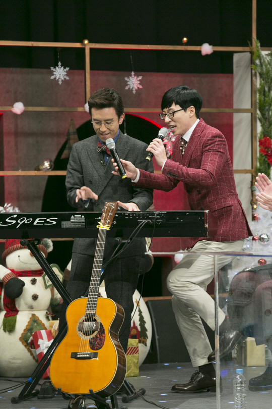 또한 평소 상대방을 공격하기에 여념이 없는 유재석-유희열 콤비 역시, 듀엣을 불러달라는 뜨거운 요청에 서슴치 않고 다시 한 번 건반 앞으로 달려나가 캐롤을 선보였다. 하지만 열심히 하는 모습과는 다르게 실력이 따라주지 않는 모습을 보이며 큰 웃음을 선사했다.