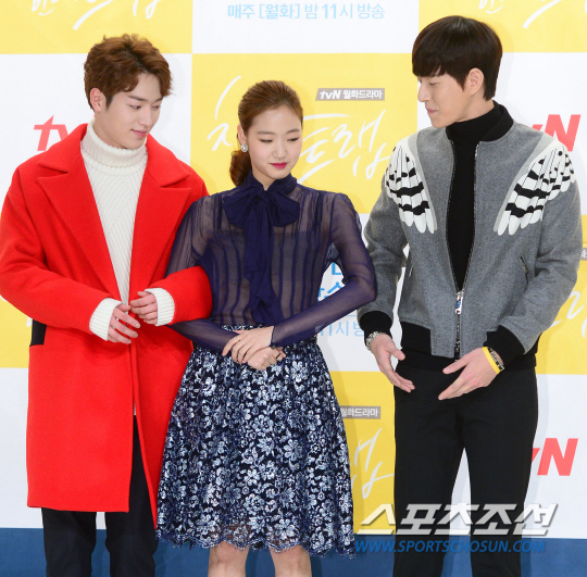 김고은이 팔짱 한 번 잘못 꼈다가 김일중 아나운서에게 굴욕을 당했다. 22일 오후 서울 영등포구 타임스퀘어에서 열린 tvN 드라마 '치즈인더트랩' 제작발표회에서 김고은이 박해진, 서강준과 함께 포즈를 취했다.