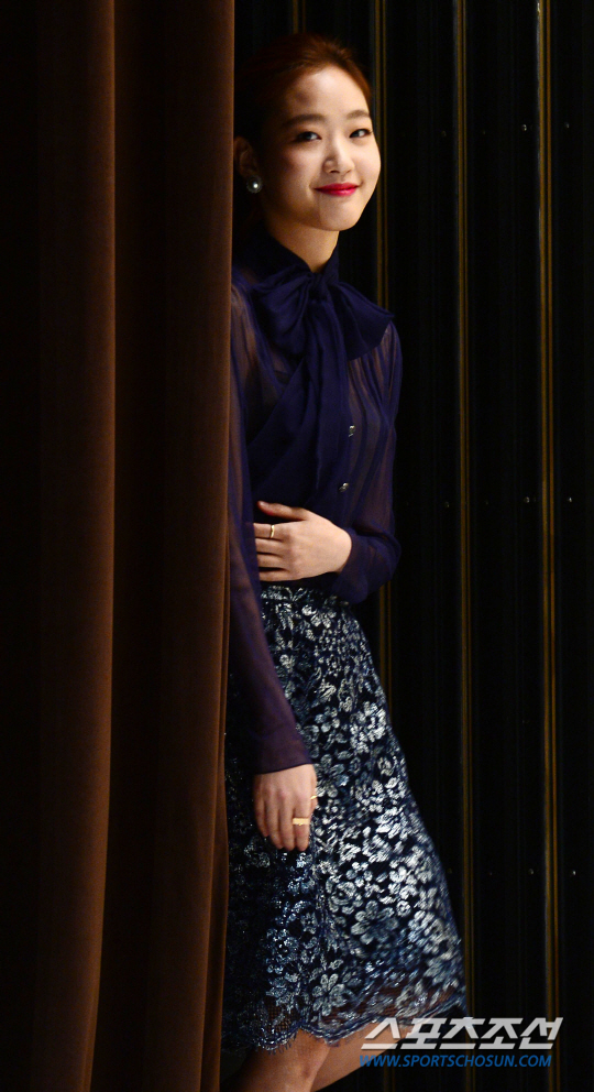 22일 오후 서울 영등포구 타임스퀘어에서 열린 tvN 드라마 '치즈인더트랩' 제작발표회. 김고은은 속살이 은은하게 비치는 보라색 시스루 의상을 입고 무대에 올랐다. 시스루 의상은 김고은의 고전적인 미모와 묘한 조화를 이루며 시선을 사로잡았다.