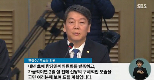 안 의원은 "내년 초에 창당준비위원회를 발족하고, 가급적이면 2월 설 전에 신당의 구체적인 모습을 국민 여러분께 보여 드릴 계획이다"고 말했다.