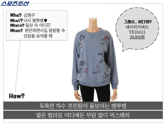 #어디꺼 #스포츠조선 #애인있어요 #김현주 #맨투맨 #낙서는_누가_해놓았을까 #해강이의발랄한저녁패션 #에이치커넥트
