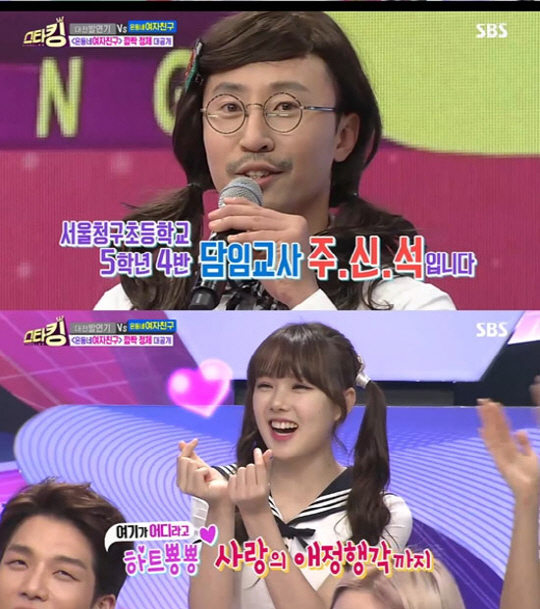 이날 서울청구초등학생들과 담임 선생님 주신석으로 구성된 '온동네 여자친구' 팀은 걸그룹 여자친구의 '오늘부터 우리는'의 안무를 완벽하게 따라해 눈길을 끌었다.