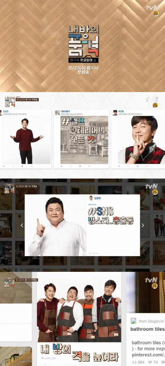 23일 오후 tvN 새 예능 프로그램 '내 방의 품격'이 첫 전파를 탄다. '내 방의 품격'은 바로 적용 가능한 생활밀착형 인테리어 정보를 전하는 인테리어 토크쇼다. 방의 격을 높이는 인테리어 재료 구입 방법부터 소품 만드는 법, 가구 리폼하는 법까지 각 분야별로 특화된 인테리어 고수들이 출연해 MC 노홍철, 박건형, 오상진, 김준현과 함께 셀프 인테리어 비법을 전한다.