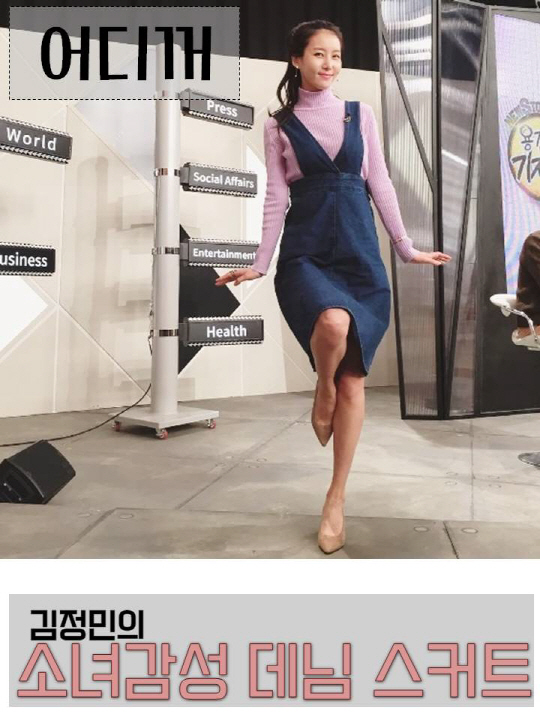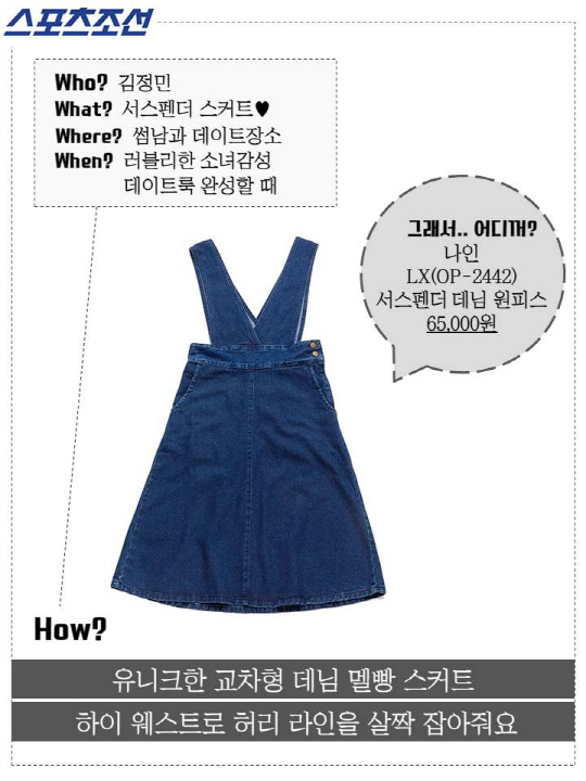#어디꺼 #스포츠조선 #김정민 #서스펜더스커트 #발랄데님 #분명_소녀감성_스커트인데_이언니는_섹시해 #나인