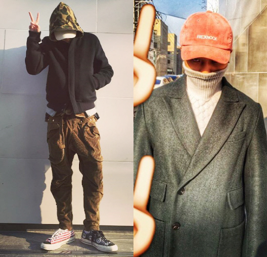 고개를 푹 인 채 브이 포즈를 취하고 있는 강승윤은 짝이 다른 신발을 신고 남다른 패션 센스로 이목을 끌고 있다.