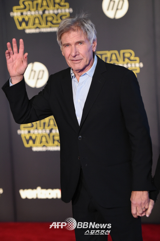 HOLLYWOOD, CA - DECEMBER 14: Actor Harrison Ford attends the Premiere of Walt Disney Pictures and Lucasfilm's "Star Wars: The Force Awakens" on December 14, 2015 in Hollywood, California. Jason Merritt/Getty Images/AFP == FOR NEWSPAPERS, INTERNET, TELCOS & TELEVISION USE ONLY ==
