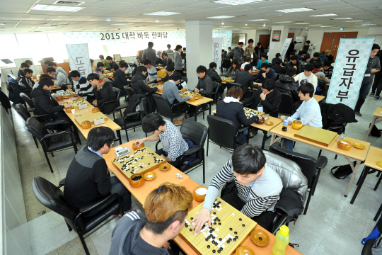 2015 대학바둑 한마당이 22일 한국기원 대회장에서 열렸다. 3인 1팀 단체전으로 진행된 이번 대회에는 50개 팀, 150명이 참가했다.