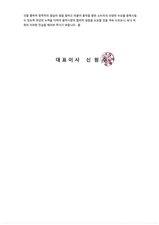 덧붙여 음악 감상의 폭 확장, 음악의 다양성 확보 등 소비자의 만족도를 높이고자 했던 '추천제'의 순기능을 살리는 합리적인 추천제도 개선을 통해 음악시장의 성장과 상생을 도모할 것임을 밝혔다. 또한 음악시장에서의 공정성 확보를 위한 자정 노력에 적극적으로 동참할 것을 굳게 약속했다. 이정혁 기자 jjangga@sportschosun.com