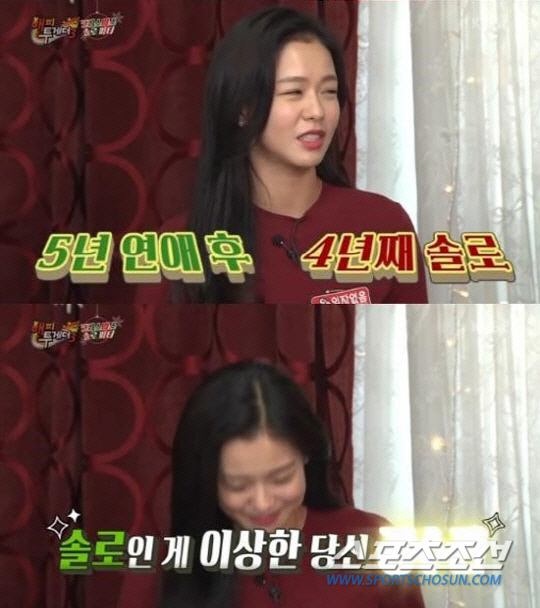이날 방송에서 경수진은 "5년 연애 후 4년째 솔로인 경수진이다"라고 자신을 소개했다.