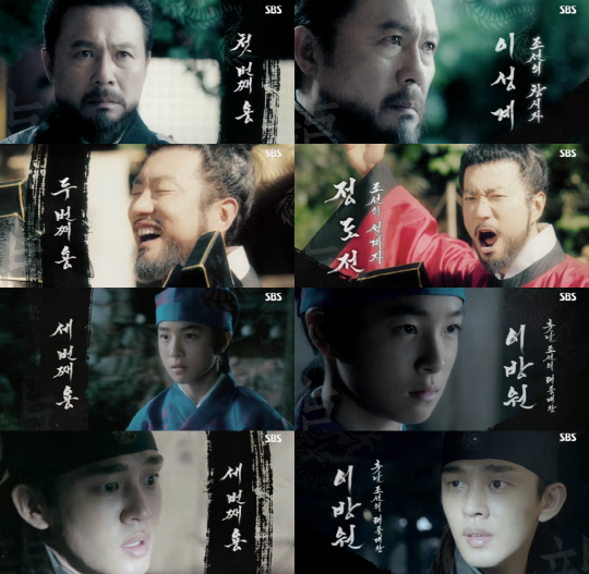 3회에선 소년 이방원(남다름 분)이 킬방원 본능을 꿈틀거리며 "세 번째 용, 훗날 조선의 태종대왕 이방원"이, 4회는 신조선 건국의 꿈을 안게 된 청년 이방원(유아인 분)의 모습과 잔혹한 검객으로 자라난 이방지(변요한 분)의 "네 번째 용, 훗날 삼한제일검 이방지"가, 5회는 민초들의 대표 분이(신세경 분)와 그녀에게 낭만적으로 반한 이방원의 모습이 그려지며 "다섯 번째 용, 훗날 이방원의 情人(정인) 분이"가 엔딩을 장식했다.