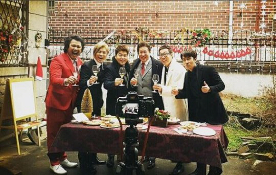 공개한 사진에는 MBC '나 혼자산다' 무지개 멤버 강남을 비롯해 김용건, 육중완, 전현무, 김동완, 김영철이 파티를 즐기는 모습이 담겨 있다.
