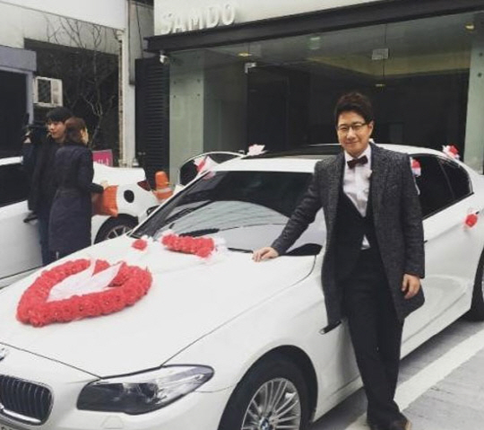 공개된 사진에는 꽃장식이 예쁘게 꾸며진 웨딩카 앞에서 포즈를 취하고 있는 조우종의 모습이 담겨 있다.