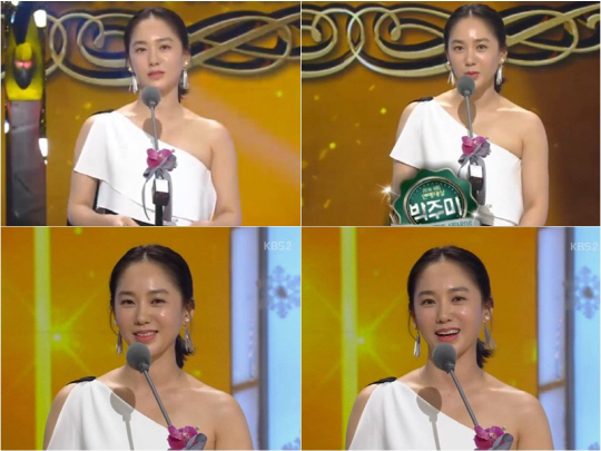 배우 박주미가 아름다운 자태로 '2015 KBS 연예대상' '대상'시상의 순간을 더욱 빛냈다.
