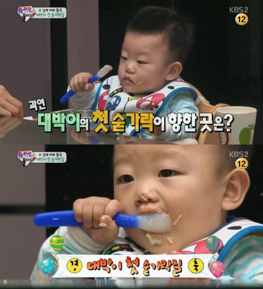 [스포츠조선닷컴 김준석 기자]'이동국의 아들 대박이가 첫 숟가락질에 성공했다.
