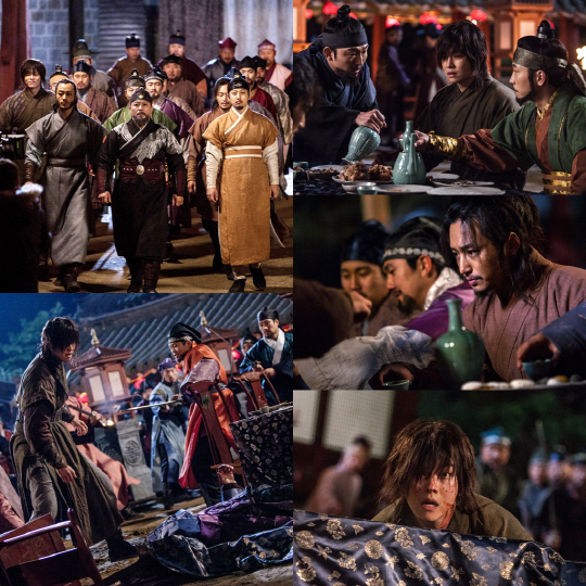 공개된 사진 속 이성계는 이지란(박해수 분) 등 가별초 무사들과 함께 도화전으로 들어가고 있다. 어두운 밤을 밝히는 등불, 술과 음식들로 가득 차 있는 상, 왁자지껄하게 떠들고 있는 사람들의 모습이 폭풍전야 같이 평화롭게 느껴진다.
