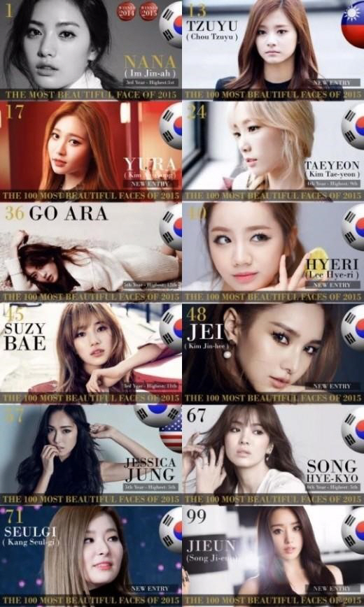 지난 27일 미국 영화 사이트 TC캔들러(TC Candler)는 공식 SNS와 유튜브를 통해 '2015 세계에서 가장 아름다운 얼굴 100인(100 The Most Beautiful Face of 2015)' 명단을 공개했다.