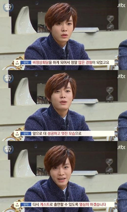 이에 유타는 "비정상회담을 하게 되어서 정말 많은 경험이 되었다. 제가 아무것도 몰랐는데 도와주신 형들, 스태프들 감사하다. 그동안 정말 즐거웠다"며 고마운 마음을 전했다.