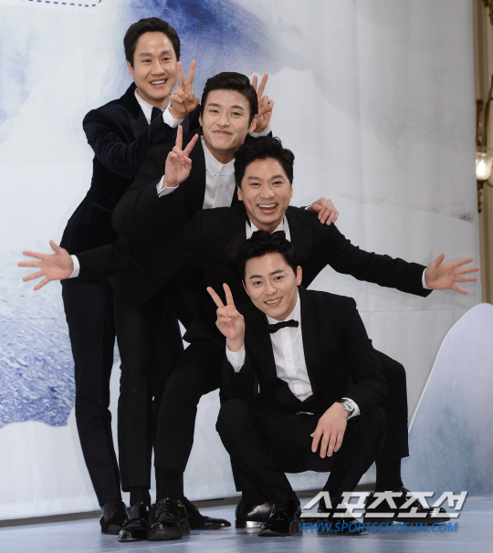 | tvN 배낭여행 프로젝트 '꽃보다 청춘-아이슬란드' 제작발표회가 29일 서울 논현동 임페리얼팰리스 호텔에서 열렸다. 정우, 강하늘, 정상훈, 조정석이 함께 포즈를 취하고 있다. 정재근 기자 cjg@sportschosun.com/2015.12.29/ |
