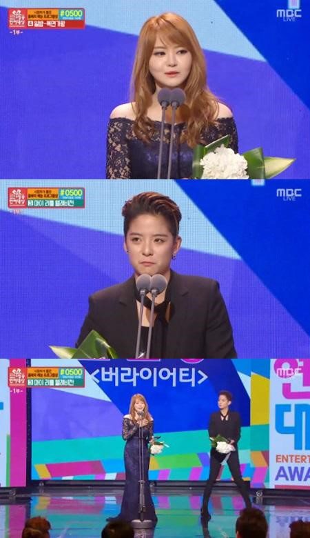 이날 서유리와 엠버는 버라이어티 부문 여자 신인상을 수상했다.