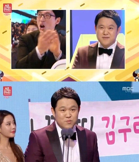 김구라는 29일 방송된 '2015 MBC 방송연예대상'에서 '무한도전'의 유재석을 제치고 대상을 수상했다.