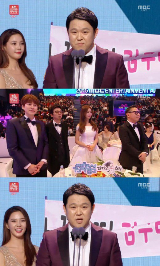 김구라는 29일 방송된 '2015 MBC 방송연예대상'에서 '무한도전'의 유재석을 제치고 대상을 수상했다.