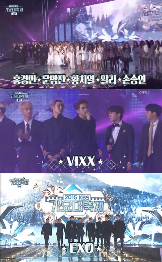 한편 'KBS 가요대축제'는 이휘재, 택연(2PM), 하니(EXID)가 MC를 맡았으며 노을, 소녀시대, 샤이니, 씨엔블루, 인피니트, 에이핑크, B1A4, 에일리, EXID, 비투비, 엑소, 빅스, AOA, 방탄소년단, 갓세븐, 마마무, 레드벨벳, 여자친구, 다이나믹 듀오, 크러쉬, 자이언티, 홍경민, 문명진, 황치열, 알리, 손승연, 김창완밴드 총 27팀이 출연한다. <스포츠조선닷컴>