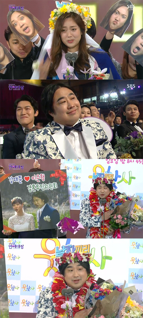[스포츠조선 조윤선 기자] '2015 SBS 연예대상' 개그맨 커플 강재준과 이은형이 각각 우수상과 최우수상을 수상했다.