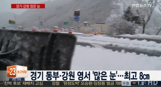 그 밖의 중부 지방에서는 2~5cm의 눈이 내리겠고, 남부 내륙과 강원 동해안에도 3cm 안팎의 눈이 쌓이는 곳이 있겠다.