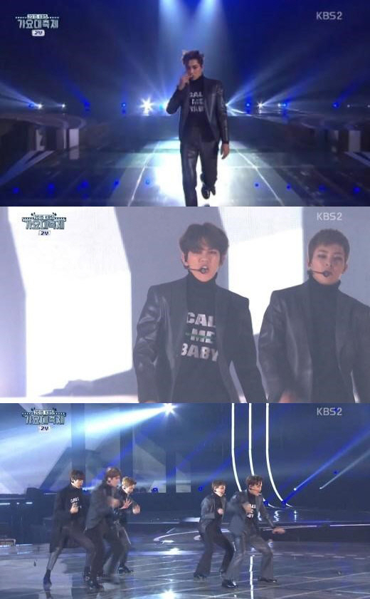 이어 엑소는 '콜 미 베이비(CALL ME BABY)'와 '러브 미 라이트(LOVE ME RIGHT)'로 남성미 넘치는 퍼포먼스로 무대를 장악했다.